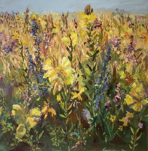 In dit werk heb ik de zomerse uitbundigheid van een veld vol teunisbloemen gevangen.